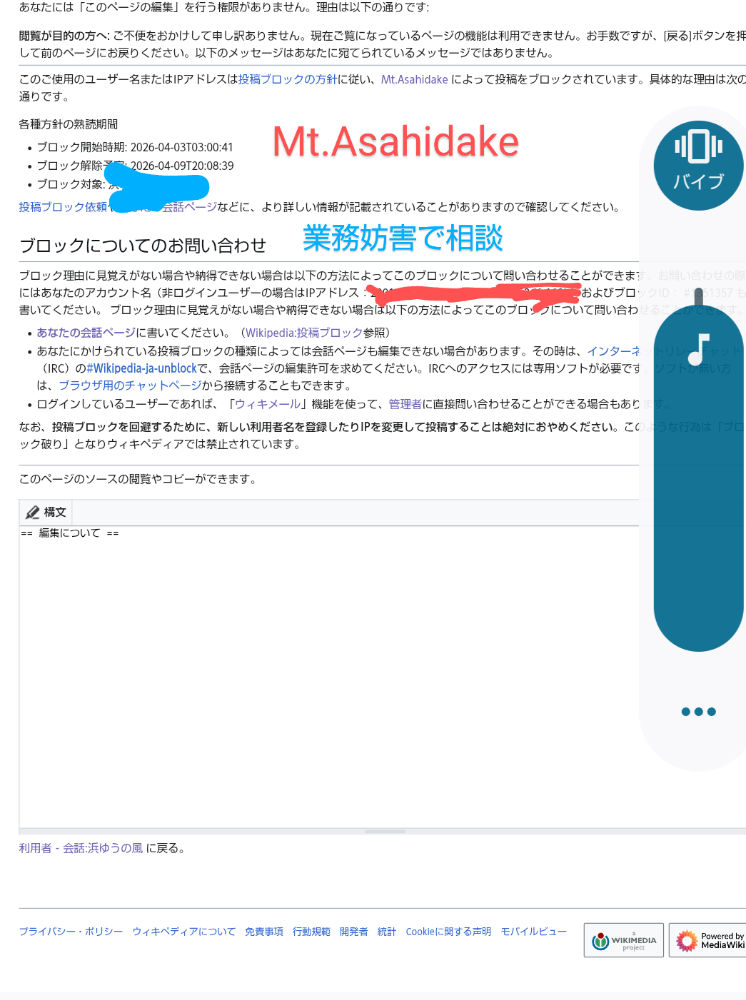 ページを編集する私がきちんと Wikipedia ブロックしたのです。